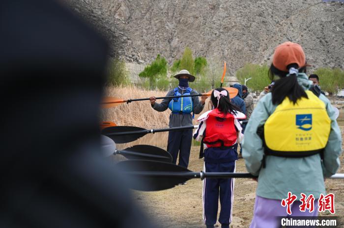 圖為皮劃艇教練向體驗(yàn)者講授皮劃艇操作技術(shù)。 趙朗 攝