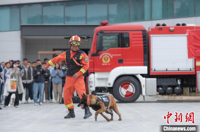 圖為搜救犬表演現(xiàn)場(chǎng)?!∝暩聛?lái)松 攝