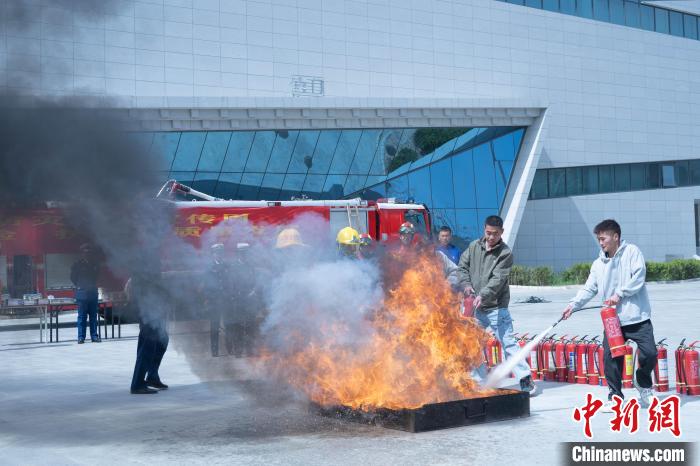 圖為學(xué)生體驗(yàn)油盆火災(zāi)撲救?!∝暩聛?lái)松 攝