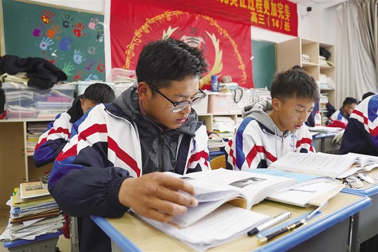 “叮鈴鈴”……隨著下課鈴聲響起,教室瞬間“熱鬧”了起來(lái)。有的同學(xué)走出教室活動(dòng)久坐的身體、有的同學(xué)拿出習(xí)題冊(cè)和同桌小聲地討論、有的同學(xué)向老師請(qǐng)教不明白的知識(shí)點(diǎn)……清風(fēng)拂過(guò),暖暖的陽(yáng)光照在這些青春的身影上,演繹出一首屬于青春的奮斗頌歌?!艾F(xiàn)在是最緊要的關(guān)頭,必須把全部精力投入到學(xué)習(xí)中,爭(zhēng)取多掌握一些知識(shí)點(diǎn)?!备呷?2班學(xué)生索朗旦增說(shuō),“我的目標(biāo)是西南政法大學(xué),希望通過(guò)自己的努力能實(shí)現(xiàn)這個(gè)夢(mèng)想。”