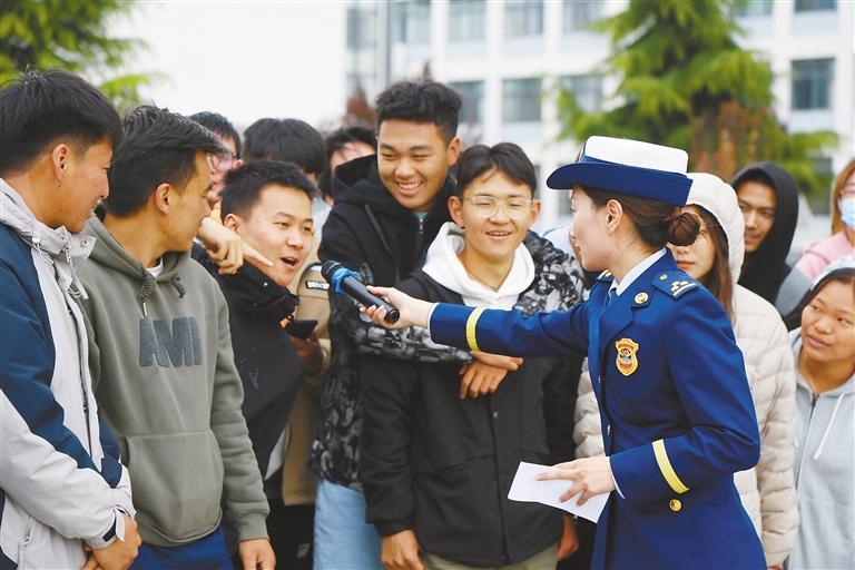 消防宣傳員在西藏大學(xué)開展消防安全有獎(jiǎng)知識(shí)問(wèn)答。
