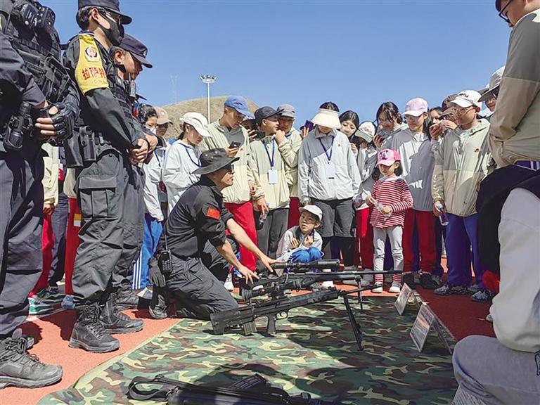 學(xué)生們近距離體驗特警裝備。圖由團區(qū)委提供