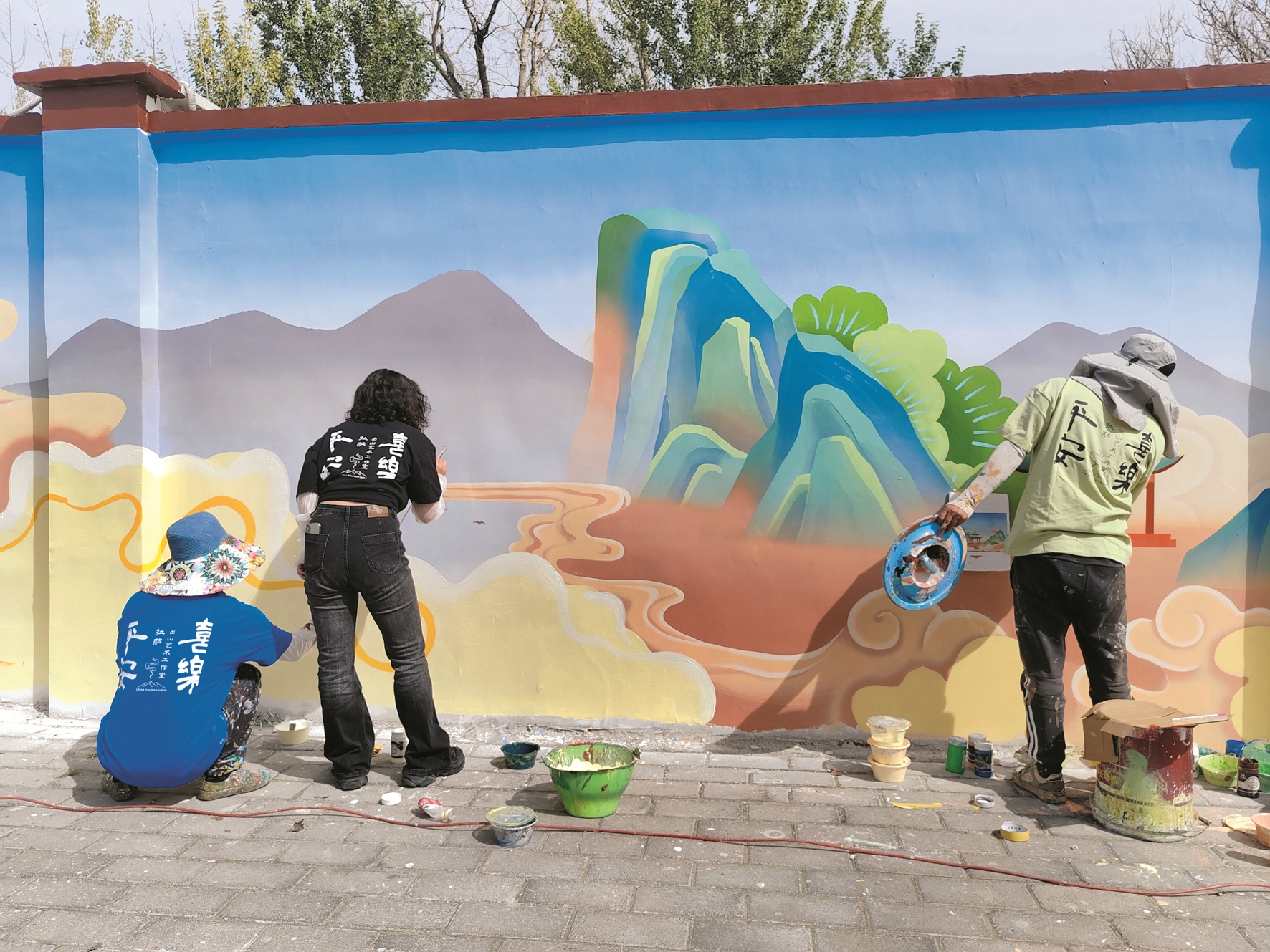 近期,在拉薩城區(qū)大街小巷,一幅幅形態(tài)鮮活、通俗易懂的彩繪被“搬”上了墻,讓原本單調(diào)的墻體靈動(dòng)起來,變成了傳播文明的窗口、學(xué)習(xí)教育的陣地、美化家園的景觀。從文創(chuàng)園區(qū)《文成公主》實(shí)景劇場向北眺望,西藏大學(xué)河壩林校區(qū)與它隔河相望,一幅構(gòu)思巧妙、主題鮮明、栩栩如生的文成公主進(jìn)藏連環(huán)圖在出山文化藝術(shù)工作室主理人安念初和她團(tuán)隊(duì)的手中,徐徐展開。她們手持畫筆和顏料,有條不紊地進(jìn)行墻體作畫,時(shí)而用筆在墻體上勾勒輪廓,時(shí)而用噴槍在墻上涂刷,將原本簡單的墻體變得趣味盎然、充滿活力。這幅唯美生動(dòng)、層次豐富、色彩飽滿的文化墻融入了拉薩元素,與周邊環(huán)境相融合,采用3D彩繪形式展示,用優(yōu)秀的傳統(tǒng)文化元素宣傳闡釋社會(huì)主義核心價(jià)值觀。