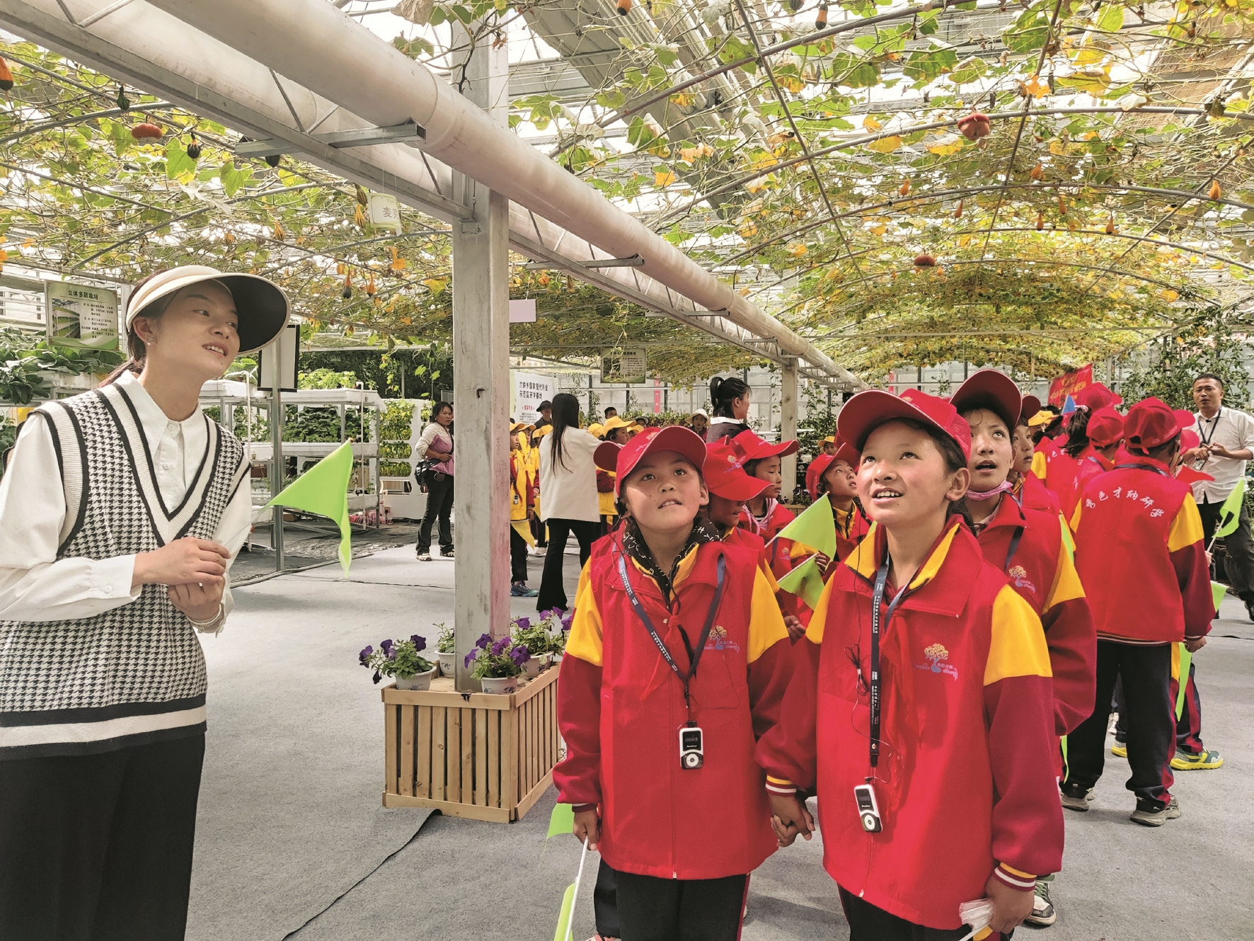 圖為學(xué)生參觀才納鄉(xiāng)國家現(xiàn)代農(nóng)業(yè)示范園區(qū)無土栽培展館。 拉薩融媒記者 余洋洋攝