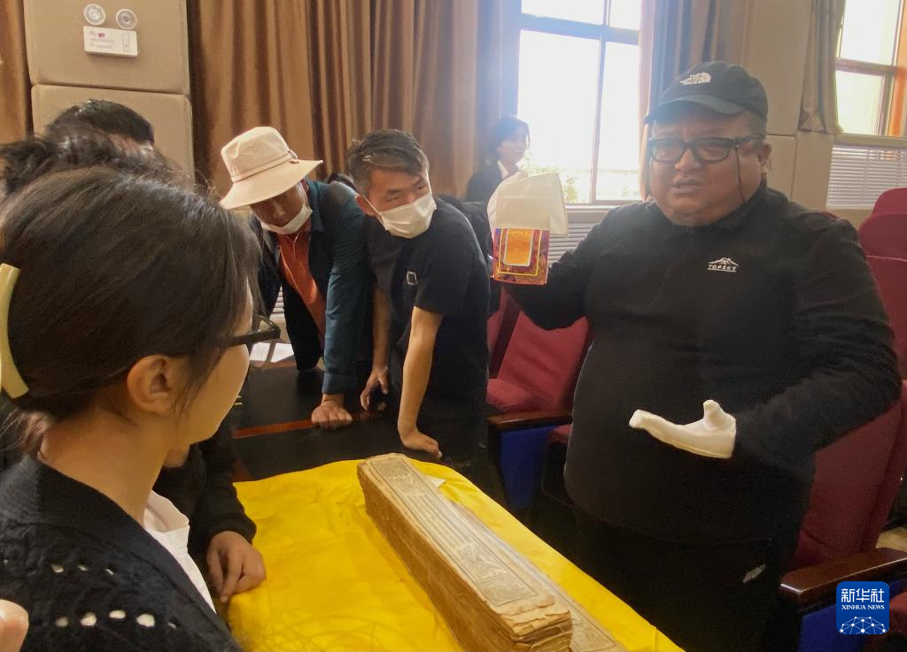 西藏自治區(qū)古籍保護中心專家與現場與會專家互動分享古籍文獻知識。新華社記者 春拉 攝