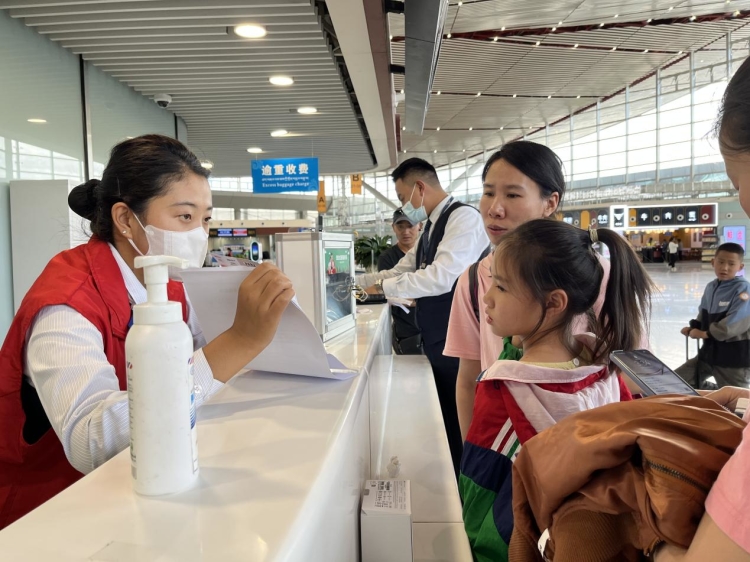 圖為“暑運”期間拉薩貢嘎機場為旅客提供“無陪兒童”服務