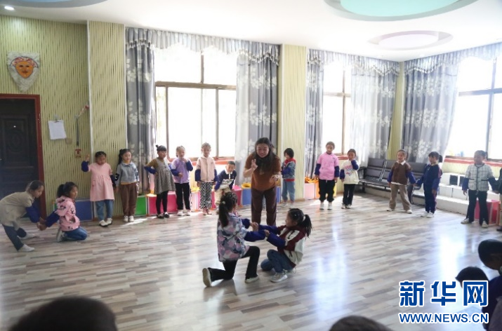 舞蹈教師孫曉哲在拉薩市北京小學(xué)指導(dǎo)學(xué)生舞蹈動(dòng)作