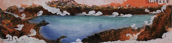 圖為劉洋國畫作品描繪的納木錯(cuò)圣象天門景觀?!⒀?供圖