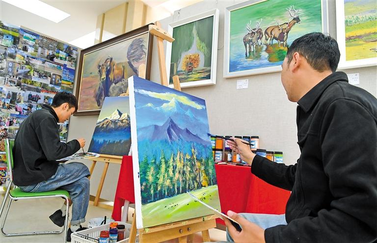 圖為西藏職業(yè)技術(shù)學院的學生在畫油畫。記者 王敏 攝
