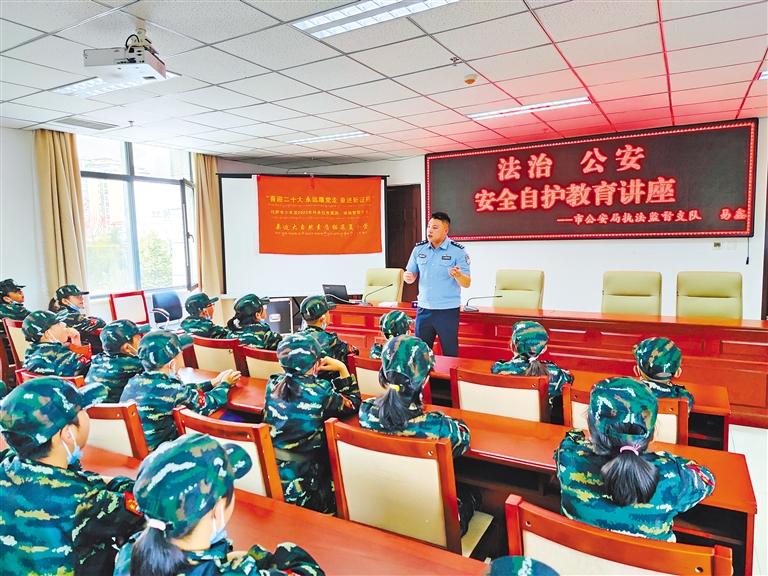 圖為拉薩市公安局執(zhí)法監(jiān)督支隊(duì)民警為少年宮學(xué)員開展安全自護(hù)教育講座。