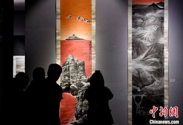 圖為觀眾正在欣賞展覽中的美術(shù)作品。李林 攝