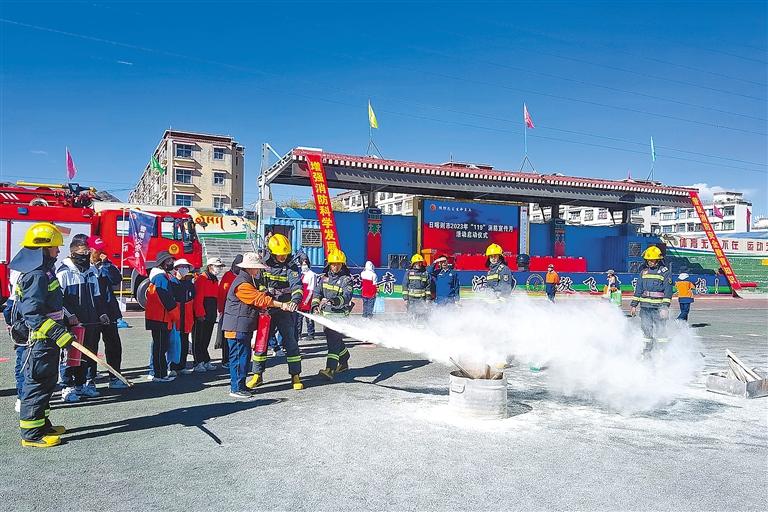 11月5日,2023年日喀則市“119”消防宣傳月活動(dòng)啟動(dòng)儀式在日喀則市第三高級中學(xué)舉行。日喀則市消防安全委員會(huì)成員單位及師生代表共1500余人參加活動(dòng)。活動(dòng)中,消防技能挑戰(zhàn)、消防科普互動(dòng)、消防裝備展覽、改革轉(zhuǎn)隸五周年成果展、消防技能展示等,吸引了大批師生近距離體驗(yàn)消防、認(rèn)識(shí)消防,進(jìn)一步筑牢校園消防安全“防火墻”。