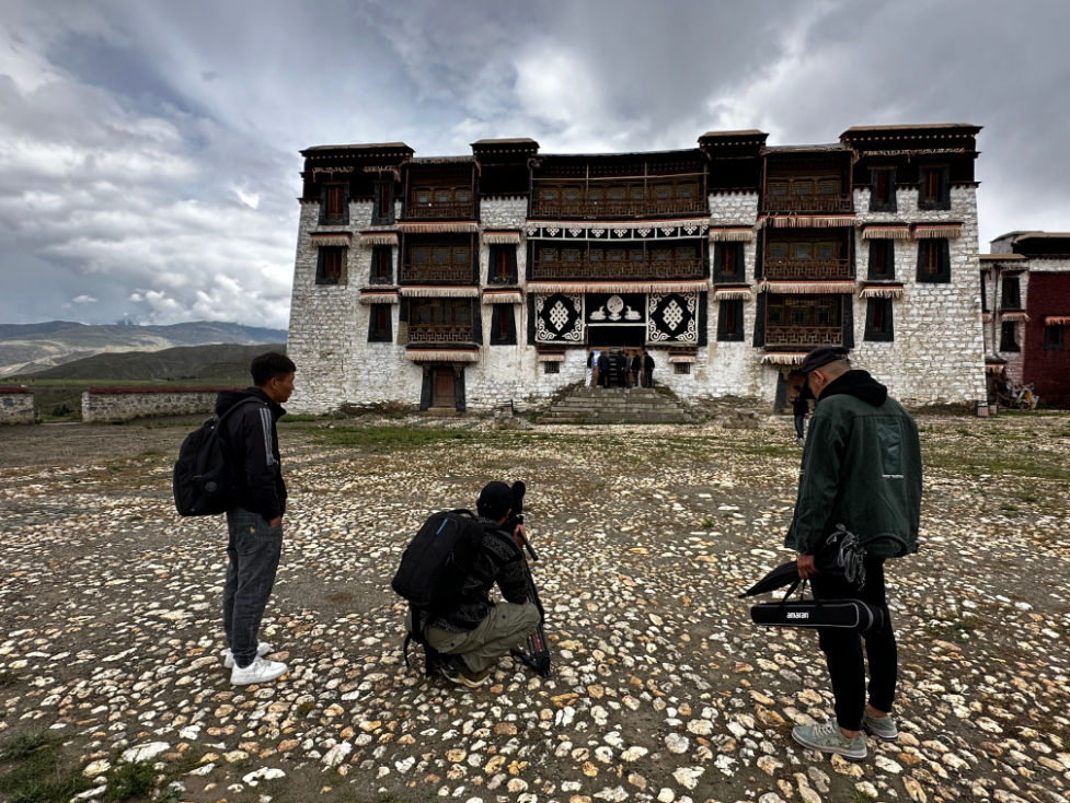 《高原文物守護(hù)者口述史》攝制團(tuán)隊(duì)在古建筑遺址的工作照