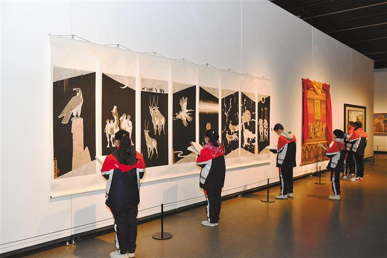 圖為11月16日,拉薩阿里河北完全中學(xué)繪畫社團(tuán)的孩子們走進(jìn)西藏美術(shù)館參觀臨摹藝術(shù)畫作。記者 次仁平措 丹增群培 攝
