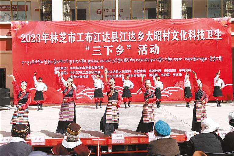近日,由林芝市委宣傳部牽頭在工布江達(dá)縣江達(dá)鄉(xiāng)太昭村聯(lián)合舉辦林芝市文化科技衛(wèi)生“三下鄉(xiāng)”活動(dòng)。林芝市、工布江達(dá)縣兩級(jí)文藝工作者為現(xiàn)場(chǎng)群眾送上的《續(xù)寫盛世》《栢榭》等精彩節(jié)目和哈呼曲藝社帶來的語(yǔ)言類節(jié)目《學(xué)習(xí)國(guó)家通用語(yǔ)言文字》,深受群眾喜愛,節(jié)目中還穿插黨的二十大精神等相關(guān)知識(shí)問答環(huán)節(jié),在場(chǎng)群眾積極參與,踴躍回答,現(xiàn)場(chǎng)氣氛十分活躍。