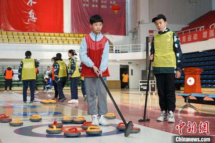 青海冰雪運(yùn)動會賽場:冰壺少年顯身手