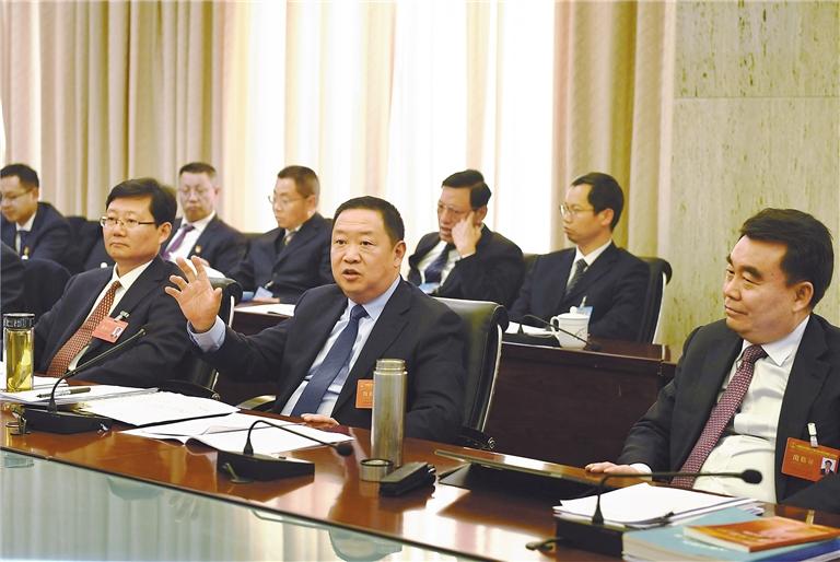 審議現(xiàn)場氣氛熱烈,代表們結(jié)合崗位實際暢所欲言,講成就、談體會,聚共識、建諍言。劉江認真聽取發(fā)言,不時與大家互動交流。