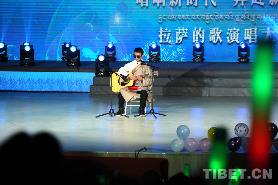資料圖:視障人士拉巴桑珠就讀于拉薩師范高等??茖W(xué)校,他在拉薩師范高等??茖W(xué)校校園“十佳歌手”大賽中獲得冠軍