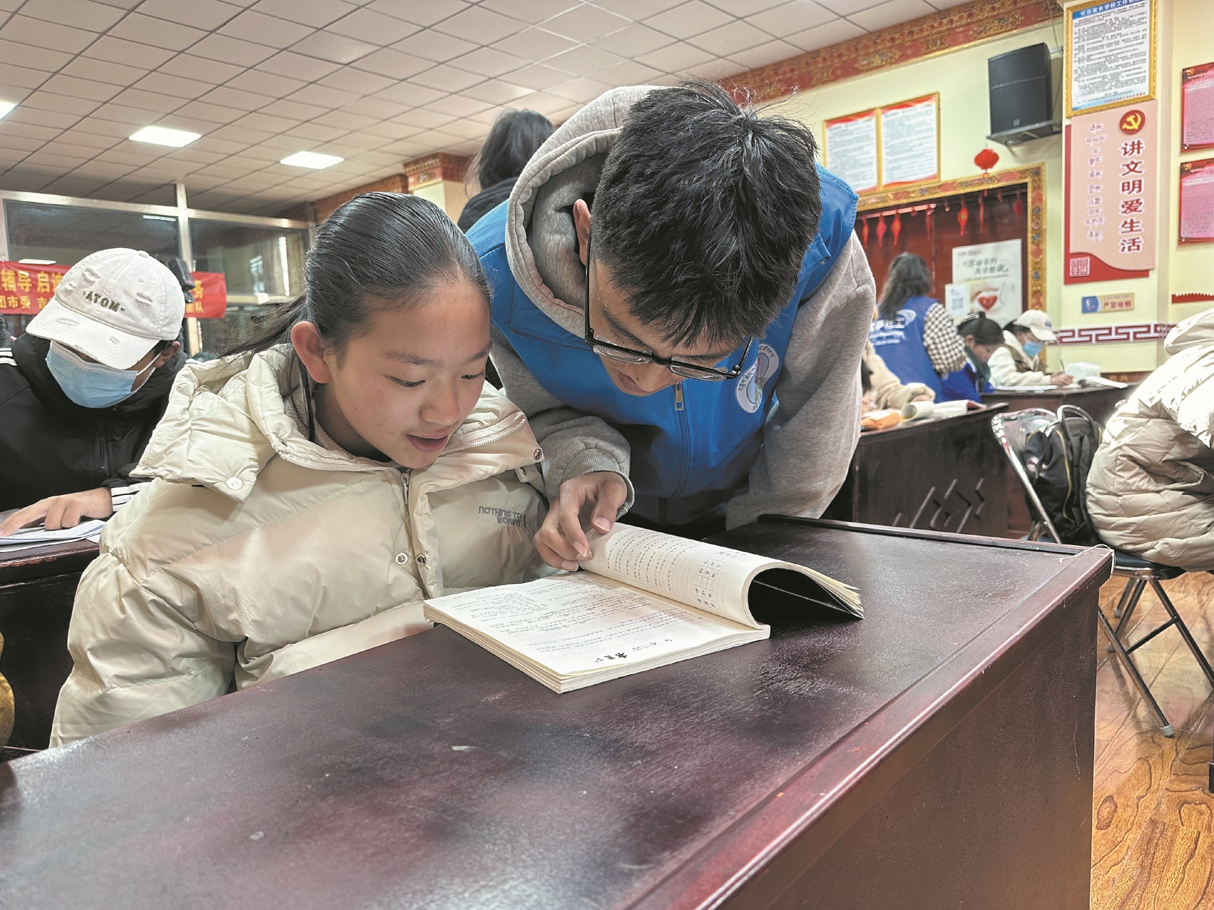 寒假期間,不少家長(zhǎng)因?yàn)闆](méi)辦法輔導(dǎo)孩子的日常學(xué)習(xí)而感到苦惱。前不久,吉崩崗街道聯(lián)合市團(tuán)委、摯善公益團(tuán)隊(duì)在熱木其社區(qū)居委會(huì)里設(shè)立了一個(gè)臨時(shí)“教室”,為轄區(qū)孩子們提供為期一個(gè)月的課業(yè)輔導(dǎo)志愿服務(wù)。現(xiàn)場(chǎng),返鄉(xiāng)大學(xué)生志愿者們變身為一名名“小老師”,耐心幫助孩子們解決學(xué)習(xí)難題,輔導(dǎo)的課業(yè)涵蓋了小學(xué)、初中的所有科目。除了教作業(yè),志愿者還組織孩子們開展演講比賽、書法比賽等活動(dòng),充實(shí)了孩子們的假期生活。