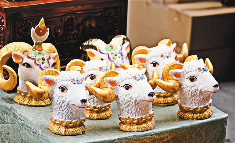 塑彩羊頭在藏語中稱為“隆果”,在雪域亙古浩瀚的歷史中,高原兒女自古以來便認(rèn)定羊是吉祥的動物,代表了藏族群眾祈盼來年五谷豐登、六畜興旺。