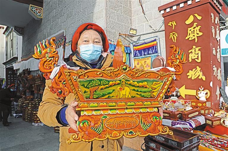 “今年,我們搬了新家,想購置一款大一些的‘切瑪’盒擺放家中,彩繪‘切瑪’盒看著顏色喜慶,純原木色的‘切瑪’盒看著端莊大氣,價(jià)格也差不多,這讓我有些不知道如何選擇?!卑赚斞胱谧屑?xì)端詳著手中的“切瑪”盒糾結(jié)地說。
