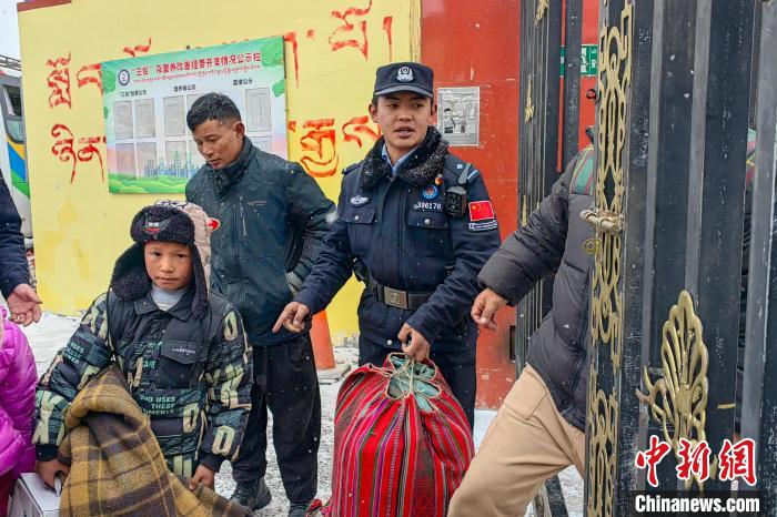 西藏阿里日土移民管理警察護(hù)送學(xué)生返校。羅發(fā)燕 攝