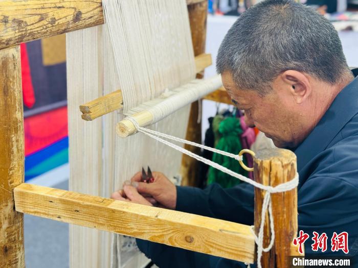 圖為國家鄉(xiāng)村工匠名師現(xiàn)場編織藏毯。中新網(wǎng)記者 孫睿 攝