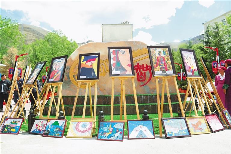 近日,拉薩市墨竹工卡縣中學(xué)舉行了以《我們有“畫”說(shuō)》為主題的師生繪畫展活動(dòng),200余幅作品內(nèi)容涉及民族團(tuán)結(jié)、愛(ài)護(hù)環(huán)境、人物等,色彩明快、構(gòu)思巧妙,傾訴著師生們對(duì)祖國(guó)的深情摯愛(ài)。