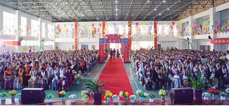 5月29日下午,拉薩市第四高級中學舉行2024屆高三年級成人禮暨畢業(yè)典禮。750余名學生身著盛裝,頭戴紅色成人禮帽,與老師、家長共赴這場華麗璀璨的青春盛宴。