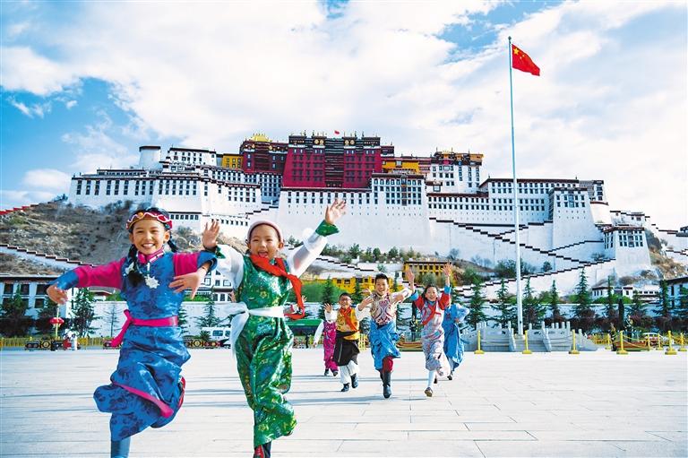 圖為6月1日,小朋友們?cè)诶_布達(dá)拉宮廣場(chǎng)玩耍。新華社發(fā)(旦增努布 攝)