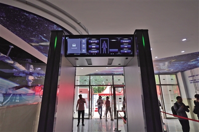 北航實(shí)驗(yàn)學(xué)??键c(diǎn),升級后的智能安檢門。新京報(bào)記者 李木易 攝