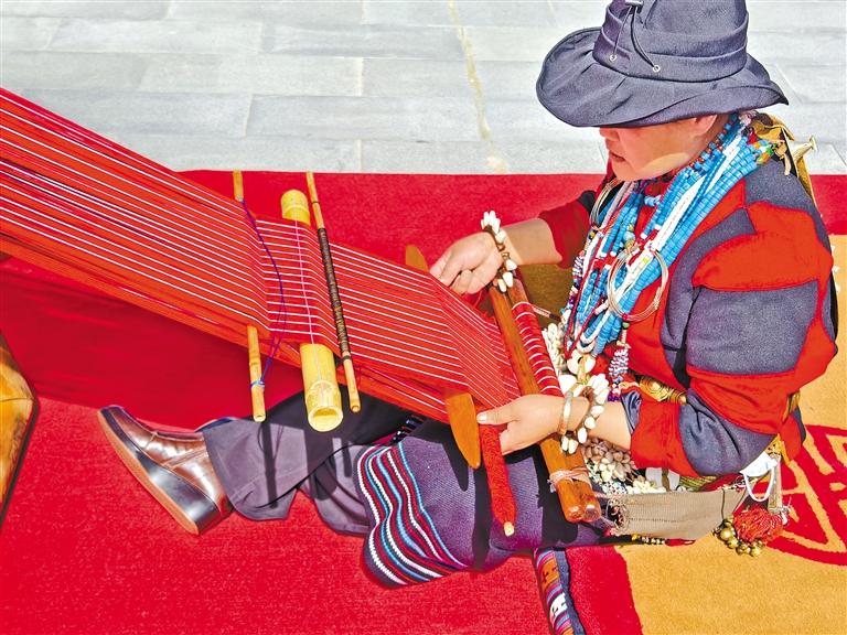 在林芝市非遺活動(dòng)現(xiàn)場(chǎng),群眾展示珞巴織布。記者 謝筱純 攝