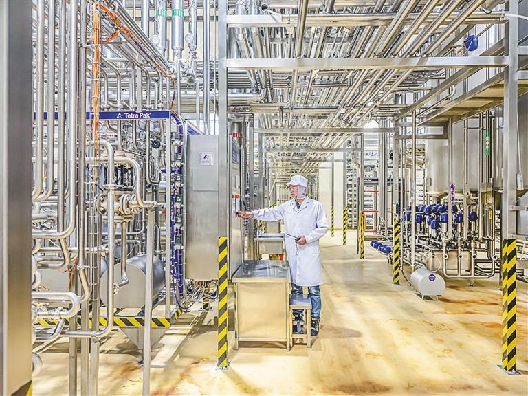 工作人員在北京市援建的西藏凈土乳業(yè)車(chē)間工作。