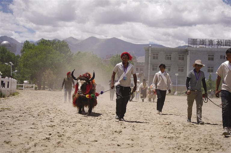 除了比賽本身,最引人注目的當(dāng)屬主人對每一頭牦牛的精心裝扮——夸張的裝扮、蓬松的牛毛、光亮的牛角,一下子把賽場的氣氛推向高潮。