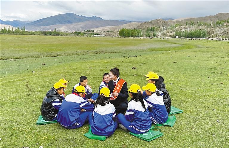 日前,曲松縣人民檢察院的檢察官在下落國(guó)家濕地公園舉行“法治小課堂”,為學(xué)生沉浸式講授濕地保護(hù)領(lǐng)域公益訴訟典型案件及政策法規(guī)。記者 丹增平措 攝