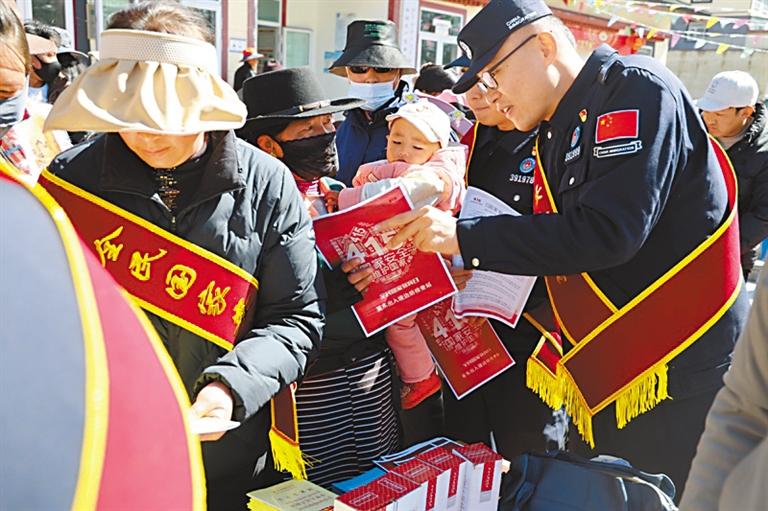 送法進街道,傳遞愛國主義精神。民警深入亞東縣主要街道,采取設立宣傳點、懸掛橫幅、走訪入戶等方式,以案釋法向邊民群眾講解“什么是國家安全”“哪些行為可能危害國家利益與穩(wěn)定”等內(nèi)容,教育倡導各商戶合法經(jīng)營、規(guī)范經(jīng)營,自覺與違法犯罪行為劃清界限,主動投入維護國家安全和邊境安全穩(wěn)定的行列中。