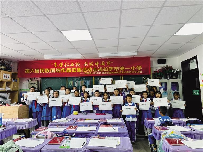 為進(jìn)一步豐富第六屆民族團(tuán)結(jié)書(shū)法、美術(shù)、攝影、微視頻作品征集活動(dòng)的內(nèi)容和形式,弘揚(yáng)傳統(tǒng)文化,激發(fā)學(xué)生對(duì)書(shū)法藝術(shù)的熱愛(ài)之情,7月5日下午,由西藏自治區(qū)著力創(chuàng)建全國(guó)民族團(tuán)結(jié)進(jìn)步模范區(qū)專項(xiàng)組主辦,西藏自治區(qū)黨委宣傳部、西藏自治區(qū)民族事務(wù)委員會(huì)協(xié)辦,西藏傳媒集團(tuán)有限公司承辦的第六屆民族團(tuán)結(jié)書(shū)法、美術(shù)、攝影、微視頻作品征集活動(dòng)走進(jìn)拉薩市第一小學(xué),為同學(xué)們帶來(lái)了一堂生動(dòng)的藏文書(shū)法課。