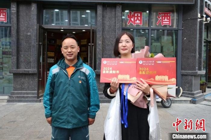 “您好!請問是劉恒赫、劉恒碩嗎?我是郵政EMS,您的高考錄取通知書到了,請您帶上身份證和準考證簽收一下。”22日11時許,中國郵政集團有限公司拉薩市寄遞事業(yè)部城西攬投部攬投員索朗多吉成功將兩封來自中國人民公安大學的錄取通知書送達到雙胞胎考生劉恒赫、劉恒碩同學的母親手中,一起送上的還有西藏郵政精心準備的鮮花和哈達。隨著此次錄取通知書的成功投遞,西藏高考錄取通知書寄遞服務保障工作正式拉開帷幕。