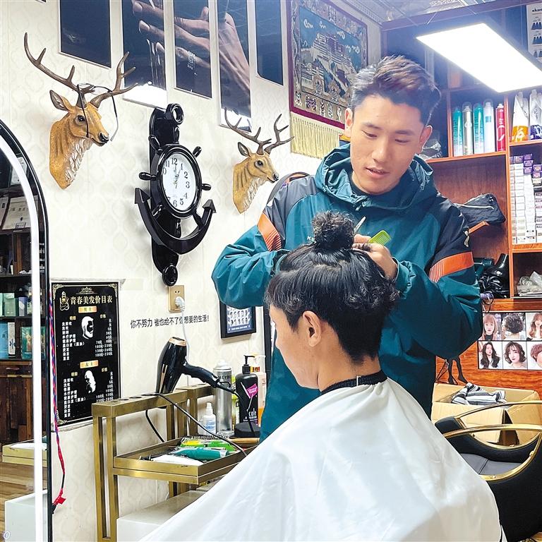 “這些年,隨著家鄉(xiāng)越來越繁榮,群眾生活水平不斷提高,大家也更加注重形象,對‘美’有了更高的追求?!苯?jīng)過自己的觀察思考和對家鄉(xiāng)的深入了解,巴桑加措覺得家鄉(xiāng)的理發(fā)行業(yè)還是一片“藍(lán)海”,前景非常好。