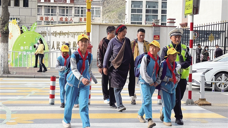 此外,拉薩交警還利用每日“護(hù)學(xué)崗”時(shí)間,主動(dòng)引導(dǎo)學(xué)生正確過(guò)馬路、認(rèn)識(shí)交通信號(hào)燈,提醒學(xué)生不在馬路上嬉戲、追逐打鬧,不乘坐三輪摩托車等不規(guī)范車輛,并向接送學(xué)生的家長(zhǎng)講解接送孩子途中應(yīng)注意的安全事項(xiàng),告誡學(xué)生家長(zhǎng)以身作則,杜絕橫穿馬路、闖紅燈等交通陋習(xí),共同營(yíng)造安全、暢通、文明和諧的道路交通環(huán)境?!拔覀児膭?lì)孩子們將學(xué)到的交通安全知識(shí)帶回家,充分發(fā)揮‘小手拉大手’作用,向家人宣傳道路交通安全知識(shí),強(qiáng)化家長(zhǎng)、學(xué)生安全意識(shí)和自我保護(hù)意識(shí)?!瘪R定雄說(shuō)。