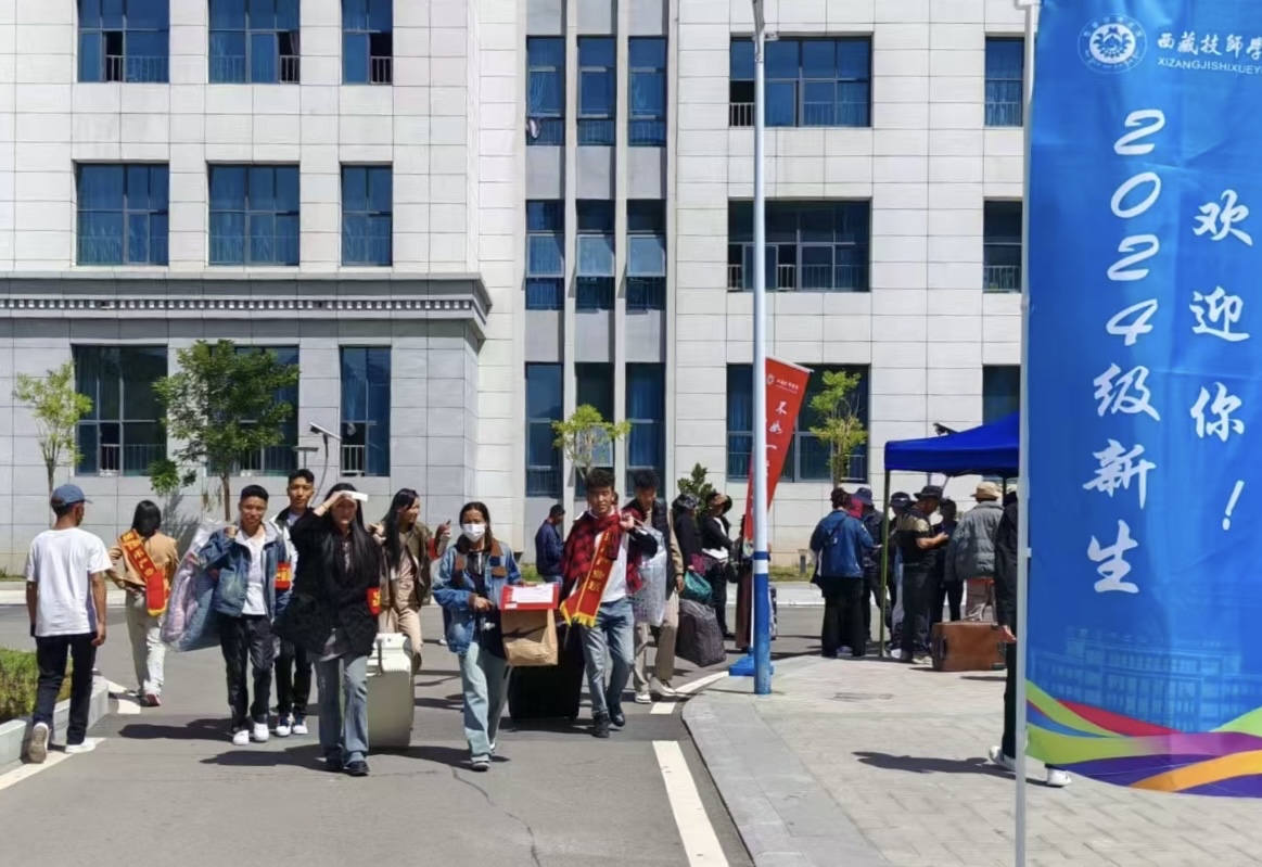 在西藏技師學(xué)院校園里,隨處可見“歡迎新同學(xué)”的標(biāo)語和展板,校園內(nèi)還設(shè)置了立體合影展臺(tái)供學(xué)生留影,營造出了濃濃的暖心氛圍。學(xué)生和家長們帶著大包小包的行李,秩序井然地進(jìn)入校園,找到所錄取專業(yè)報(bào)到點(diǎn)前完成入學(xué)手續(xù),各班班主任都等候在報(bào)到點(diǎn),耐心地回答學(xué)生們的疑問、專業(yè)學(xué)習(xí)情況、體檢和助學(xué)金的申請等問題。