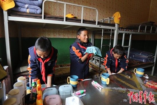 9月14日,西藏那曲市班戈縣第二(中石化)小學(xué),學(xué)生們午休后在宿舍里洗漱。部分離家較遠(yuǎn)的學(xué)生,可以選擇讀書(shū)期間全程住校,生活起居都有專(zhuān)門(mén)的老師照顧。中青報(bào)·中青網(wǎng)記者 孔斯琪 攝