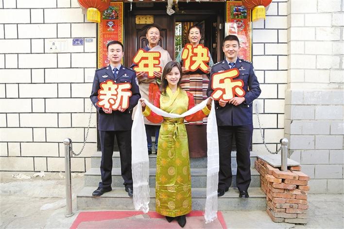連日來,西藏出入境邊防檢查總站執(zhí)法調(diào)查支隊(duì)以“百萬警進(jìn)千萬家”活動為依托,開展“民族團(tuán)結(jié)一家親,民警結(jié)親賀新春”為主題的“尋親之路”?;顒又校蠹夜餐瑨炱鸺t燈籠,貼上春聯(lián),共致新春祝福。圖為結(jié)親民警在家門口合影。唐睿 仁青旺堆 攝
