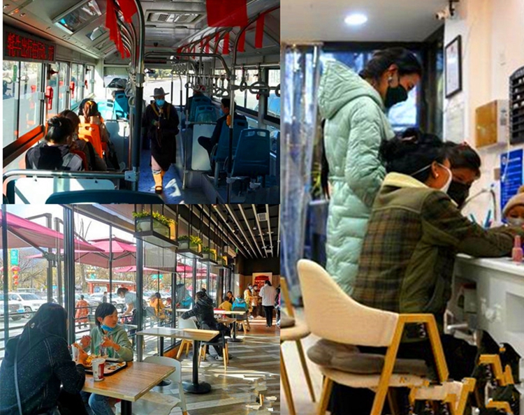 隨著西藏自治區(qū)連續(xù)50多天無新冠肺炎新增確診或疑似病例。近日,日喀則市發(fā)文明確,取消居家隔離、集中隔離,同時(shí),各餐飲企業(yè)和個(gè)體餐飲門店恢復(fù)堂食,經(jīng)濟(jì)社會(huì)逐步趨于正常。圖為市民生活如常,戴口罩坐公交、在餐飲店堂食、在美甲店美甲 圖片來源:中國(guó)新聞網(wǎng)