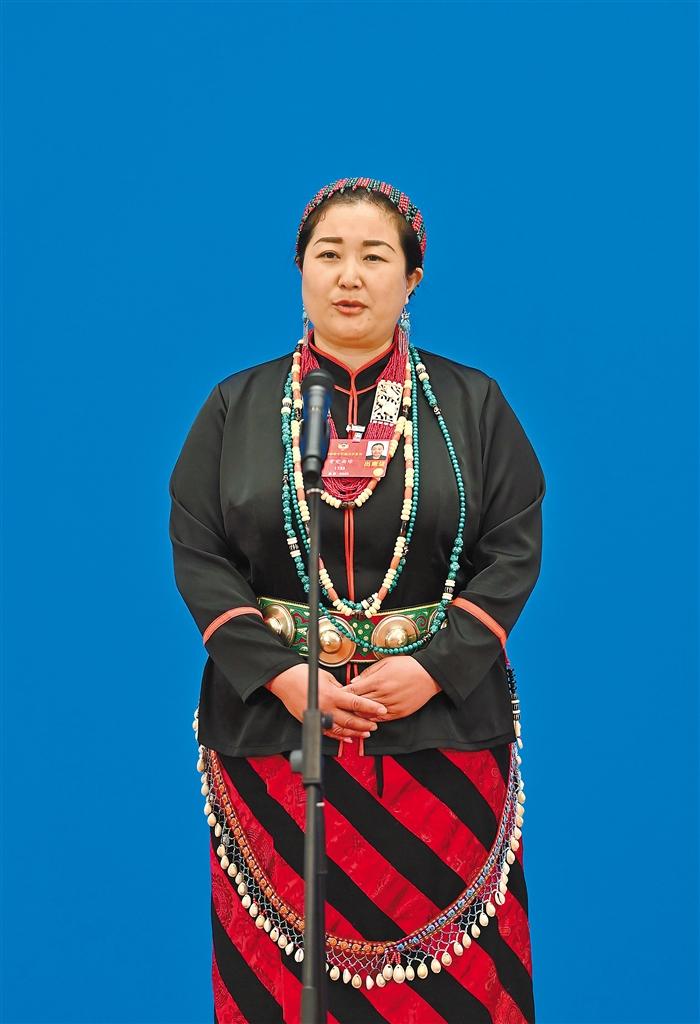 “我們扎日鄉(xiāng)全部脫貧了,請國家放心!”24日上午,在人民大會堂新聞發(fā)布廳“委員通道”,身著珞巴族服飾的住藏全國政協(xié)委員、山南市隆子縣扎日鄉(xiāng)黨委副書記、鄉(xiāng)長貢覺曲珍帶著扎日鄉(xiāng)747名邊民的感激之情說道。