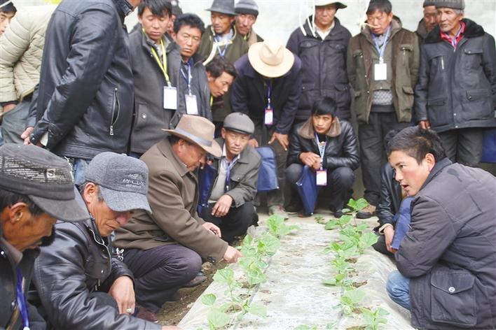 圖為白朗縣龍頭企業(yè)技術(shù)人員對貧困戶進行蔬菜種植技術(shù)培訓。記者 次仁片多 索朗瓊珠 攝