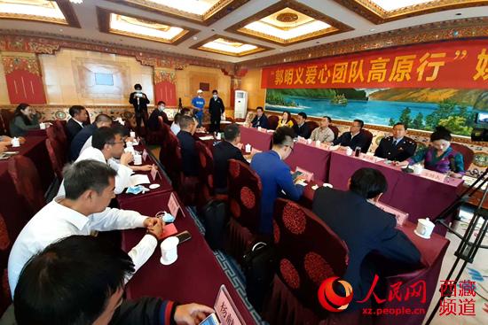 “郭明義愛(ài)心團(tuán)隊(duì)高原行”記者見(jiàn)面會(huì)現(xiàn)場(chǎng)。柴濟(jì)東 攝