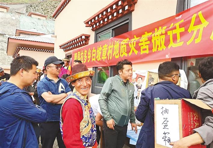 拉多鄉(xiāng)黨委書記蔣云海介紹,今天舉行分房?jī)x式,先讓白坡章村群眾拿到新房,我們計(jì)劃從7月底開始,安全有序組織群眾搬遷入住。在林芝市扶貧辦駐村工作隊(duì)的努力下,將爭(zhēng)取到的援藏資金用于搬遷群眾購置衛(wèi)浴和家具家電等設(shè)施,讓他們住得安心、住的放心。此外,在實(shí)施搬遷過程中,我們將按照“搬得出、穩(wěn)得住、能致富”的原則,不斷完善后續(xù)扶持政策,以黨建為引領(lǐng),推動(dòng)山羊養(yǎng)殖產(chǎn)業(yè)發(fā)展,既要讓他們住進(jìn)好房子,又要過上好日子。