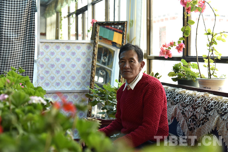 采訪中,印象最深的是索南益西家的那些花。一株三角梅放在陽光房的窗臺上,陽光照耀下,明媚亮眼。海棠花最多,扦插不久的海棠花并不高,陽光房的桌子上有六七盆,開著或紅或粉或白的花。還有一盆吊蘭,藤蔓隨著繩子攀爬,向屋頂延伸。