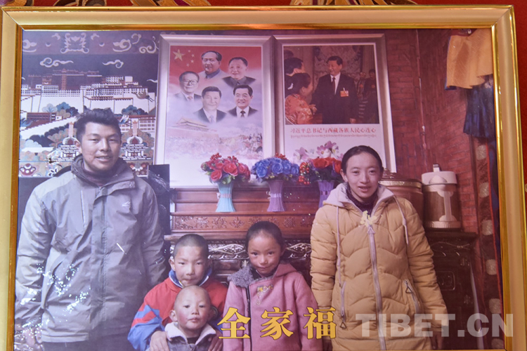 圖為西藏自治區(qū)阿里地區(qū)改則縣圓夢新居易地扶貧搬遷點居民扎西頓珠一家全家福 翻拍:王媛媛